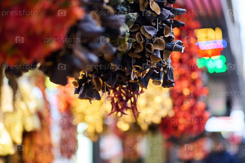 Сушеные марципаны висят в магазине
