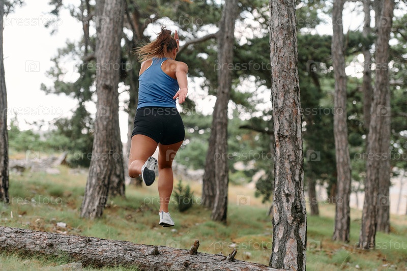 Бесстрашная женщина преодолевает деревянные препятствия в опасной лесной местности