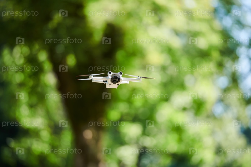 Профессиональный дрон снимает парк в солнечный день