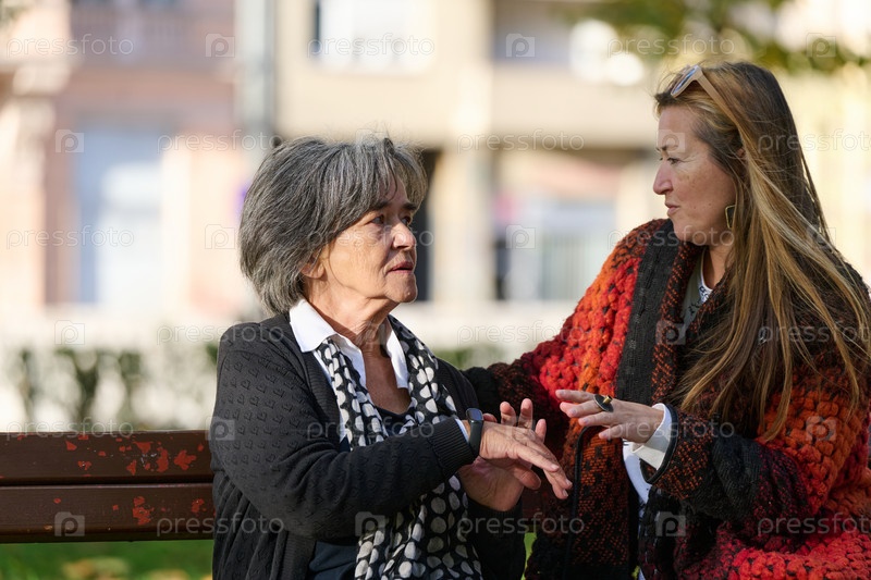 Обнимая поколения: любовь и поддержка дочери для ее пожилой матери в солнечный день в парке