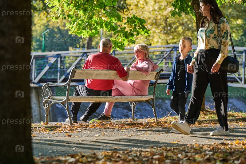 Пожилая пара находит утешение и радость, отдыхая на скамейке в парке и ведя душевную беседу после восстанавливающей силы прогулки, что является свидетельством прочного товарищества и безмятежной связи, сопровождающей золотые годы