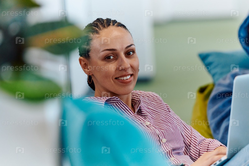 Современный программист обсуждает будущие бизнес-проекты с коллегами в современном офисе стартапа