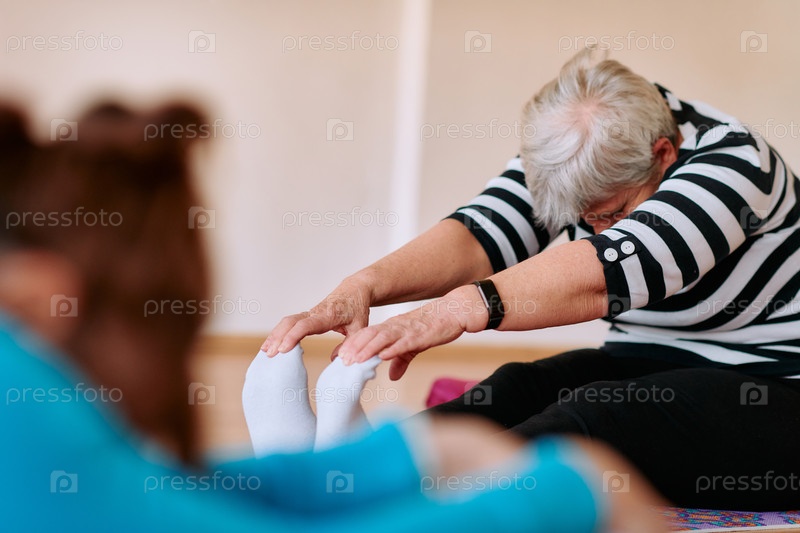 Пожилая женщина занимается растяжкой спины в залитом солнцем месте для оптимального здоровья и благополучия