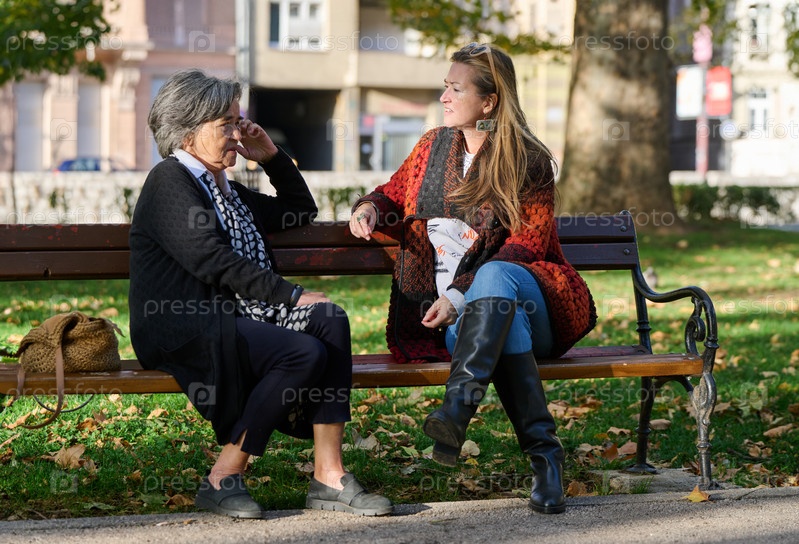 Обнимая поколения: любовь и поддержка дочери для ее пожилой матери в солнечный день в парке