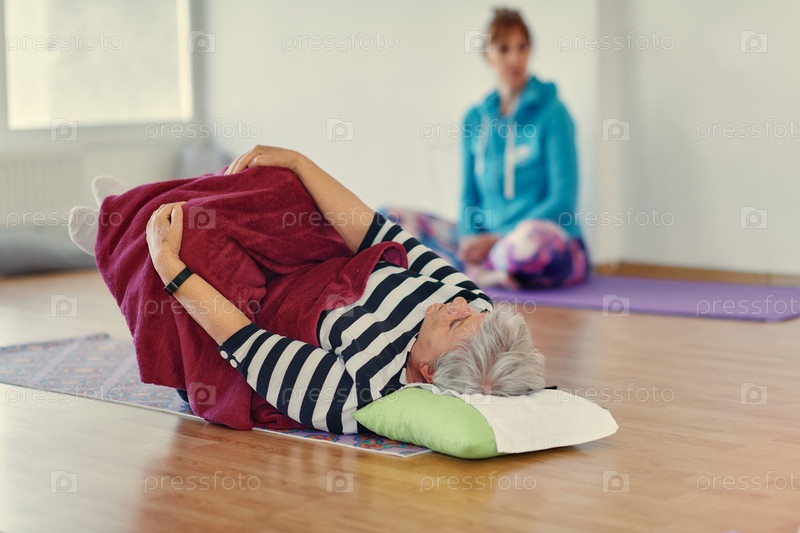 Пожилая женщина занимается растяжкой спины в залитом солнцем месте для оптимального здоровья и благополучия