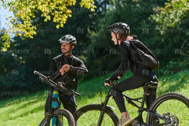 Милая парочка, вооруженная велосипедами и поглощенная планированием своего путешествия, проверяет свои мобильные телефоны и часы, планируя живописные маршруты в парке, органично сочетая технологии и приключения на свежем воздухе для восхитительного опыта