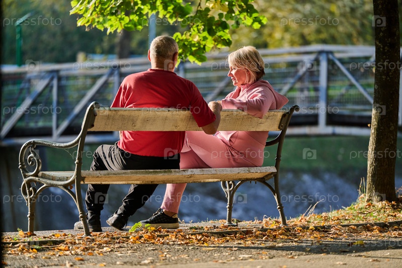 Пожилая пара находит утешение и радость, отдыхая на скамейке в парке и ведя душевную беседу после восстанавливающей силы прогулки, что является свидетельством прочного товарищества и безмятежной связи, сопровождающей золотые годы