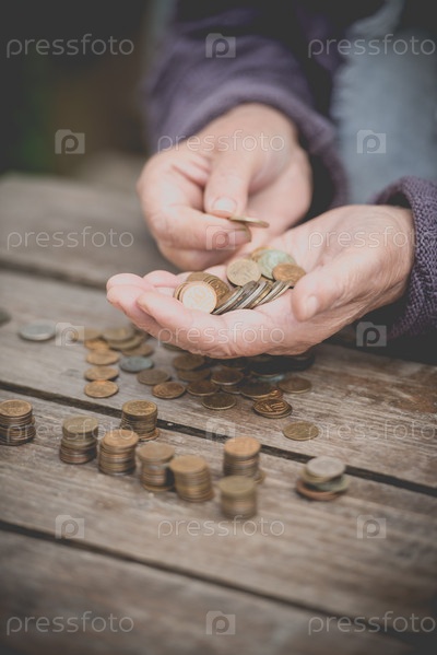 Деньги, монеты, бабушка-пенсионерка и концепция прожиточного минимума — Старушка с грустью находит мало денег