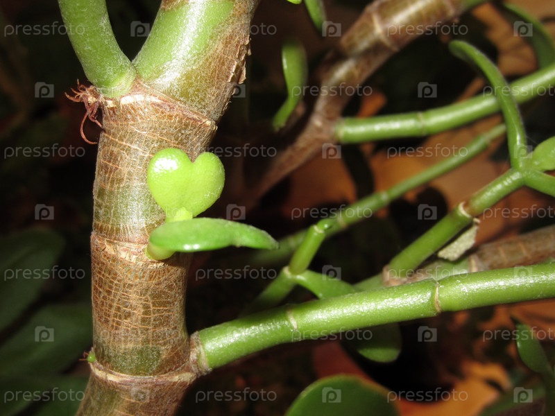 На Толстянке Денежном дереве растет листик в форме сердечка