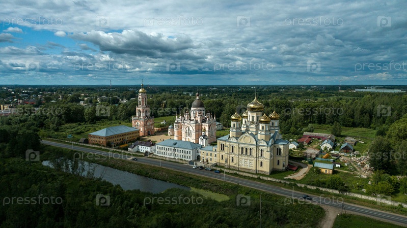 4k вид на старинный монастырь где-то в районе города Вышний Волочек, древняя архитектура, путешествие по России