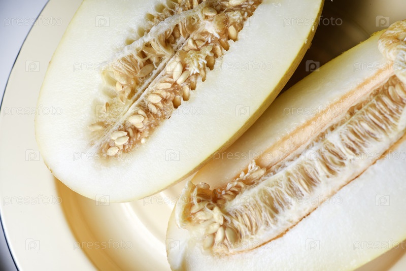 Спелая разрезанная дыня. Желтая дыня осенью
