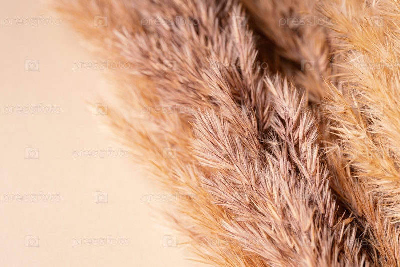 Бежевые тростники на бежевом фоне. Красивый фон с нейтральными цветами. Минимальная, стильная, трендовая концепция. Тонированное изображение