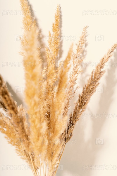 Сухие пампасные травы тростника на бежевом фоне. Красивый рисунок с нейтральными цветами. Минимальная, стильная, монохромная концепция