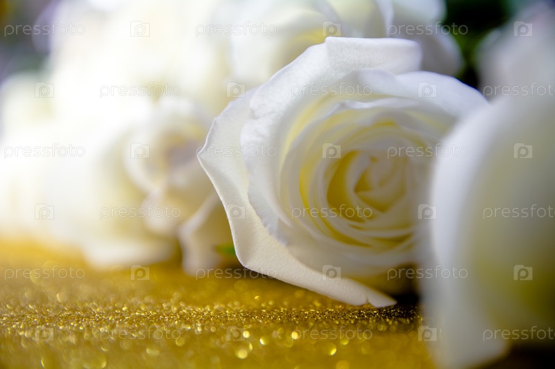 Бутоны белых роз на золотом фоне