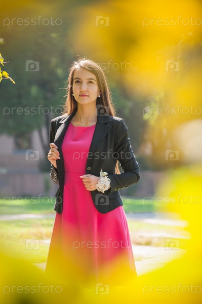 Молодая девушка азиатской национальности в красном платье на природе, портрет женщины