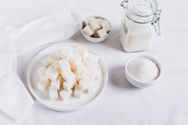 Альтернативный выбор между кусковым сахаром и сахарным песком на белом фоне