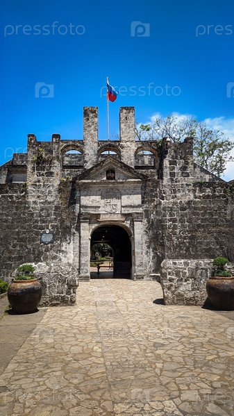 Форт Сан-Педро в Себу, Филиппины, представляет собой треугольную крепость с пышной зеленью, историческими пушками и видом на оживленный город