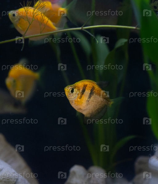 Аквариум, наполненный разноцветными рыбками и пышными растениями