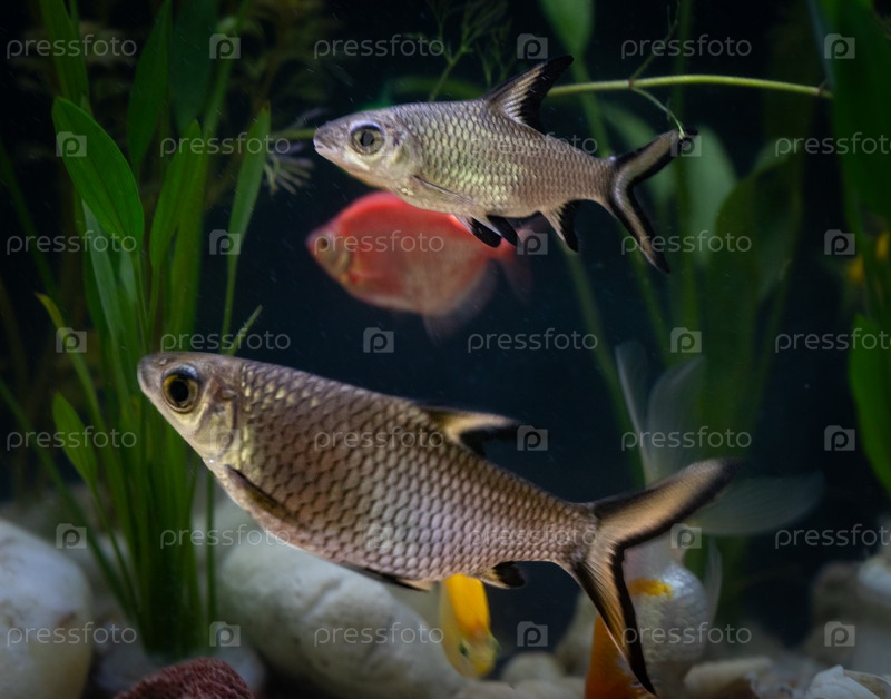 Аквариум, наполненный разноцветными рыбками и пышными растениями
