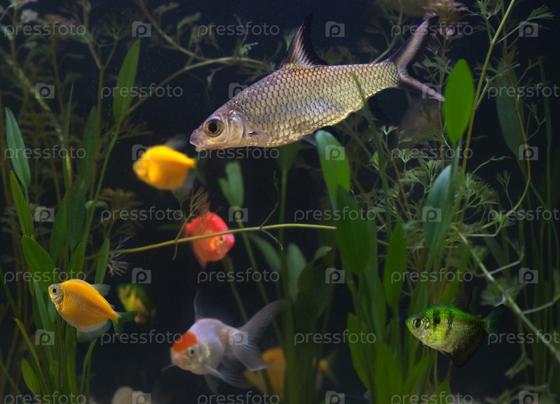 Яркий аквариум, наполненный разноцветными рыбками и пышными растениями