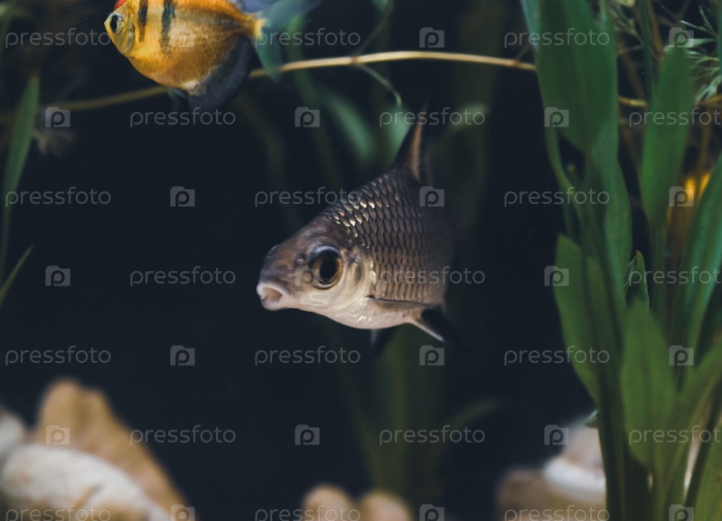 Яркий аквариум, наполненный разноцветными рыбками и пышными растениями