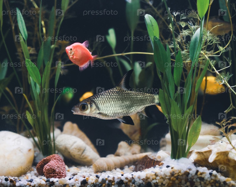 Аквариум, наполненный разноцветными рыбками и пышными растениями
