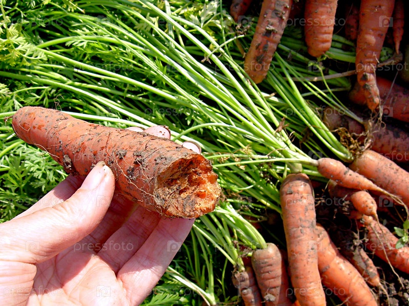 Уборка урожая моркови. Морковь, поврежденная грызунами