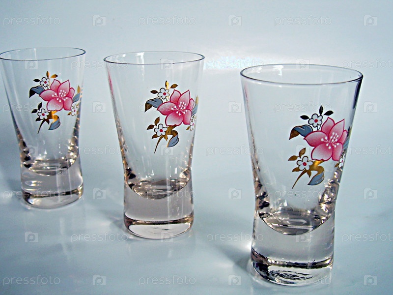 Стопки, стекло на белом фоне