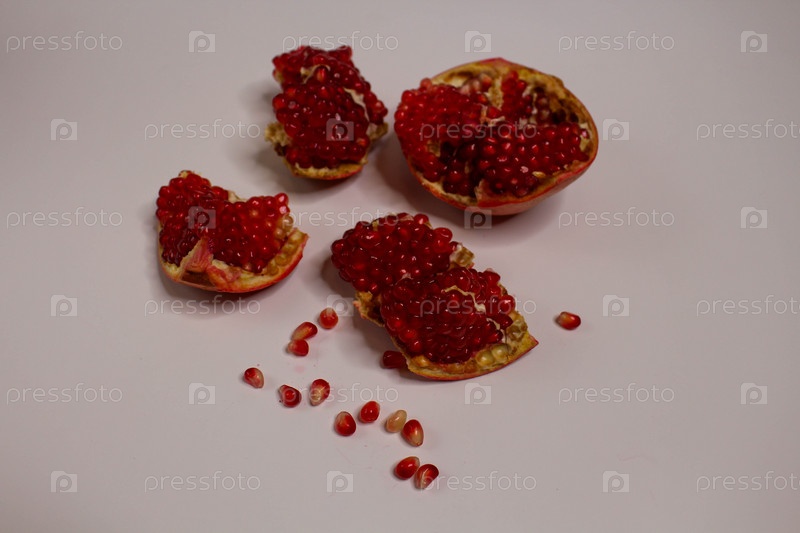 Сладкий красный гранат, изолированный на белом фоне. семена граната