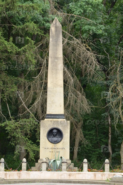 Обелиск на месте дуэли (гибели) поэта Михаила Юрьевича Лермонтова в Пятигорске на северо-западном склоне горы Машук, скульпторы Микешин Б.М., Дитрих Л.А., Козлов В.В
