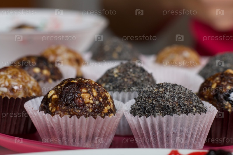 Конфеты из сухофруктов. Шарики из чернослива, фиников и кокоса. С посыпкой из черного кунжута
