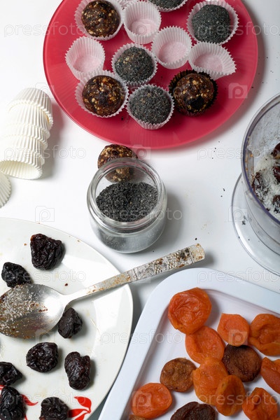 Конфеты из сухофруктов. Шарики из чернослива, фиников и кокоса. С посыпкой из черного кунжута