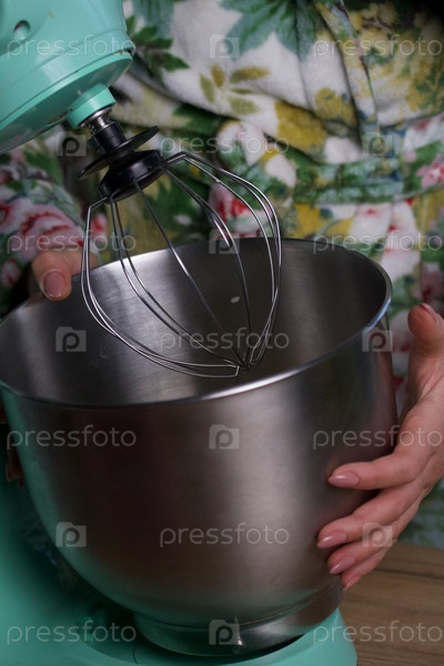 Женщина ставит металлическую миску в блендер