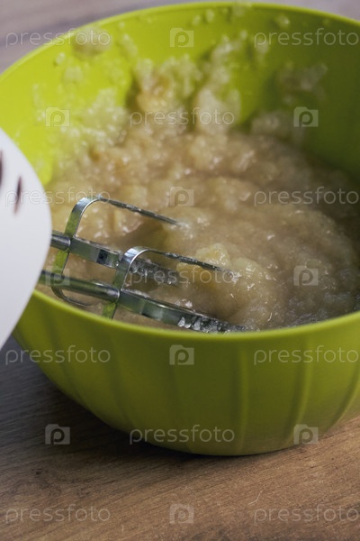 Венчики блендера погружаем в яблочное пюре. Делаем яблочную мякоть