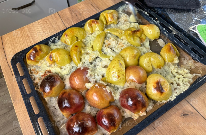 Противень с печеными яблоками. Делаем фруктовую начинку из яблочного пюре