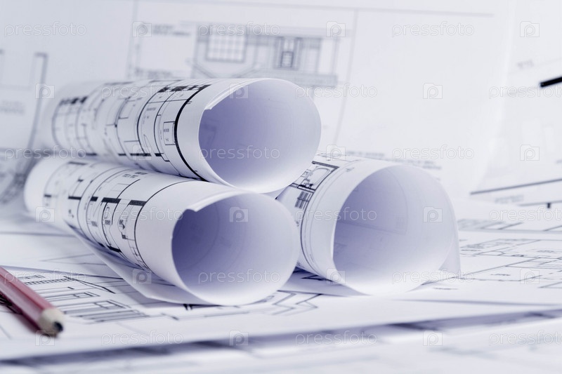 План строительства. Чертеж схемы, свернутый в рулон. Планирование ремонта дома