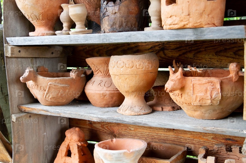 Выставка керамики. Керамика. Набор глиняных горшков. Древнее искусство изготовления керамики