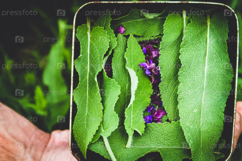 Сбор лекарственных трав. Травник собирает шалфей. Лечение травами