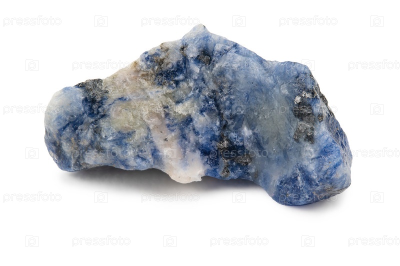 Кусок необработанного голубоватого содалита с белыми прожилками