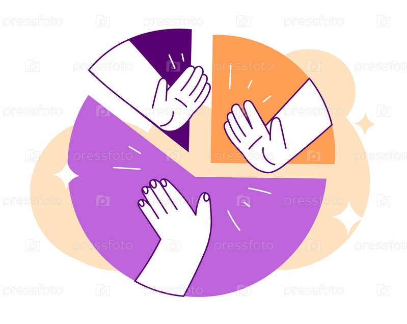 Каждый выполняет свою часть работы, люди составляют схему по частям, дайте пять