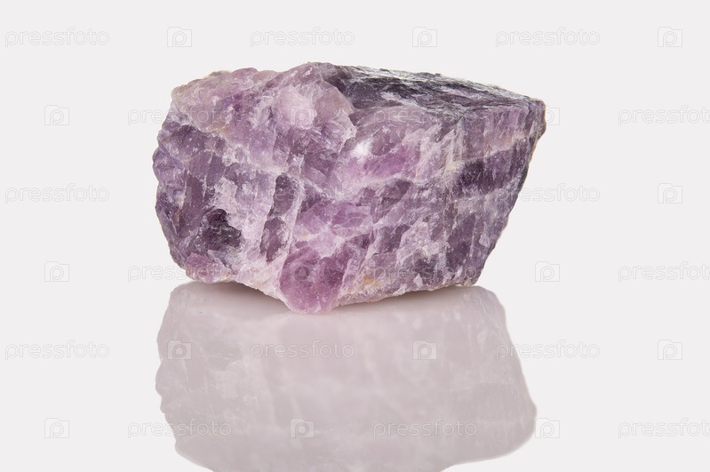 Фрагмент минерала флюорита розоватого цвета на светоотражающей поверхности