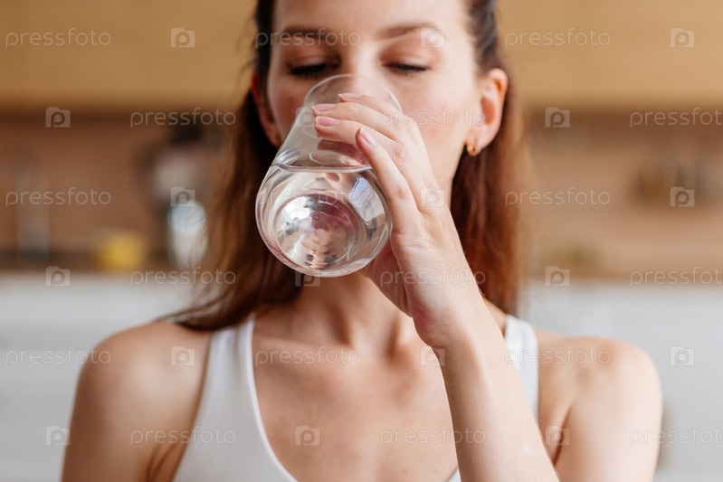 Крупный план женщины, пьющей воду для утоления жажды, поддержания здоровья, диеты и здорового образа жизни