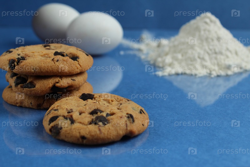 Печенье Мука Кулинария на синем фоне с местом для текста