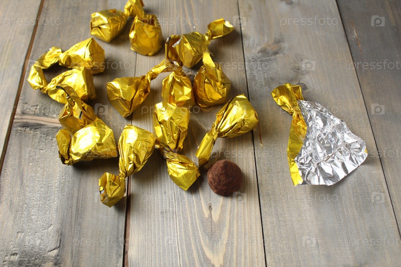Шоколадные конфеты и обертка для упаковки. Процесс упаковки домашних сладостей