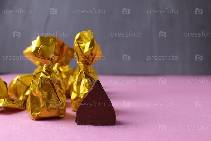 Крупный план шоколадного трюфельного рожка в форме треугольника с местом для текста