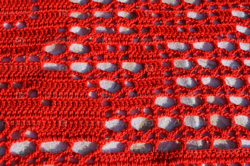 Вязаный крючком фрагмент красной новогодней скатерти
