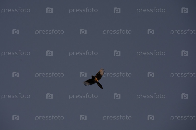 Птица летит небе, расправив крылья