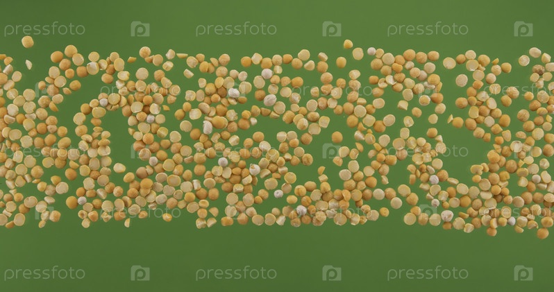 Полоса гороха, изолированная на зеленом экране. Вид сверху. Горизонтальная линия из семян