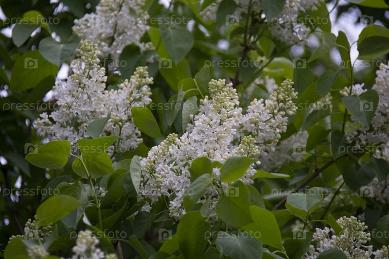 Цветущая белая сирень