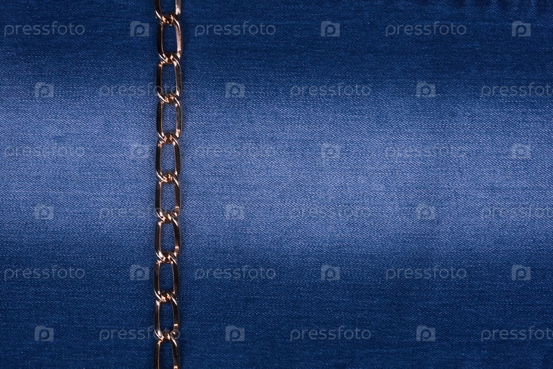 Золотая цепочка лежит на джинсах